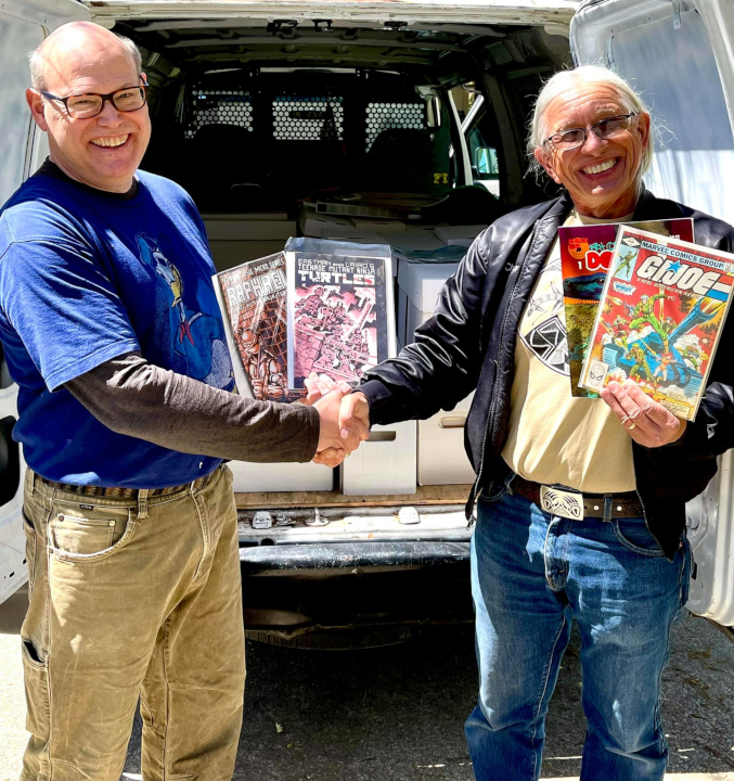 Comic Books Are On Fire! Howdy! A couple of decades ago, there was a young comic book dealer who endlessly hustled upcoming new comic books in his ads as "Hot Hot! Hot! (Limit 3)." He reportedly burned through several million dollars of his family money before finally walking away from our beloved comic book world entirely, leaving many thousands of fans stuck with "Hot!" comics that were essentially unsalable.  Chuck and James in Atlanta, Georgia. I mention this bit of obscure comic book retailing history only to explain why I try to never use the word "hot" as regards comic books. It still just rubs me the wrong way. That having been said, the passing of upwards of 30 years of time has (finally) validated many of that young man's originally overblown representations. The "limited edition" comics that he was touting are now recognized as some of the earliest publisher variants, and are selling reasonably well for us at 5X-10X cover price. We also do not see them included in collections as much anymore, which certainly adds to their newfound cachet.  X-Men #1 What this reinforces for me is that almost all comics become more desirable when they hit the magic 30-year point. As a case in point, I can remember with great clarity our once being overloaded with thousands of copies of X-Men #1, Spawn #1, X-Force #1, and Legends of the Dark Knight #1. All four of those comics now sell quite well for us, and what original supplies we have left are dwindling, rather rapidly. The good news is that practically every early 1990's collection that we purchase today contains those four titles, so we are doing a brisk business in sharing those iconic titles with an entirely new generation of collectors. It took a long time for those titles (and thousands of others) to bloom in the collector marketplace, but that new dawn has finally arrived.  Legends of the Dark Knight #1 I could write a long essay about the supply/demand ratios that are driving these secondary market changes, but (as my provocative heading to today's newsletter hinted) I want to relate to you today that the entire comics industry is on fire right now. In my infinite capacity for hubris, before this morning I thought that our own 101% sales increase of this March (over March 2020) was unique to Mile High Comics. That was, until I read in one of my industry blogs that this remarkable doubling of sales in March occurred through the comics retailing world, and that some comics retailers experienced sales increases even larger than ours! Really and truly, that unexpected revelation totally blew my mind.  Darth Vader #3 variant edition So what is going on? Truthfully, I have no idea. I do know that we have seen a huge influx of new comic book buyers of late, and that they are quite cognizant that the back issues of titles published during the past ten years (in particular) are stunningly scarce. This has led to speculative demand that is truly over the top, with our having to revise our pricing upwards on some issues as frequently as three times per week. For example, we sold a Marvel Comics Darth Vader #3 variant edition for over $1,200 last week, which is a title that is only about five years old. Many other Marvel and Dark Horse Star Wars titles are tripling by the week, especially if they in any way tie in with streaming properties, such as The Mandalorian.  Chuck and Greg in Jacksonville, Florida. Before I close out this little report, I do want to emphasize that not all comics are rapidly rising in value right now. Nor is there any assurance whatsoever that current speculator demand will continue into the future. I am confident enough in this short term trend, however, that when I was asked to up my bid on a huge 70,000+ comics collection by an additional $10,000.00 on Saturday, I agreed. I made that momentous decision not because of that man's enormous array of Silver Age comics, but rather because he had NM/Mint copies of darn near every comic book published during the past three years. Those are worth their weight in gold right now.  Chuck in the Atlantic Ocean That's it for today. I have to run to the FedEx Freight yard in Jacksonville, Florida this morning, and load that huge comics deal for shipment back to Colorado. Then I (finally) begin my own journey home, with just a few stops in Tennessee on the way. This three-week adventure has required a long, long journey of over 5,000 miles, but I am thrilled with the 20,000 lbs of comic books, action figures, graphic novels, and comics hardback collections that I have been able to ship home. Life is good! Happy collecting! Chuck Rozanski/Bettie Pages, President - Mile High Comics, Inc. April 5, 2021  Chuck and Nanette P.S. My beloved wife, Nanette, would be less than pleased with me if I failed to mention that our 50% off SPRINGBREAK! Codeword sale is still in effect for you on all of our back issues comics and magazines, including most of the ones in the list below. Only new issues, a few variants, and our professionally-graded items are exempt from this Very generous across-the-board half price opportunity. Enjoy! MARVEL  AMAZING ADVENTURES (1970) (#1-39) (MARVEL) #1 AMAZING ADVENTURES (1970) (#1-39) (MARVEL) #1 Very Good AVENGERS (2017) (#672-690) (MARVEL LEGACY) #684 Near Mint/Mint BLACK KNIGHT (1990) (#1-4) (MARVEL) #1 NEWSSTAND Fine BLACK KNIGHT (1990) (#1-4) (MARVEL) #3 NEWSSTAND Very Good BULLWINKLE AND ROCKY (1987) #4 (Marvel Star) Fine CAPTAIN AMERICA (1968) (#100-454) (MARVEL) #108 Very Good CAPTAIN AMERICA (1968) (#100-454) (MARVEL) #120 Very Good CAPTAIN MARVEL (1968) (#1-62) (MARVEL) #19 Fine CAPTAIN MARVEL (1968) (#1-62) (MARVEL) #23 Fine CAPTAIN MARVEL (1968) (#1-62) (MARVEL) #34 Very Good CAT (1972) #1 Very Good CAT (1972) #2 Very Good CAT (1972) #3 Very Good CAT (1972) #4 Very Good DAREDEVIL (1964) (#1-380) (MAN WITHOUT FEAR) (MARVEL) #22 Fine DAREDEVIL (1964) (#1-380) (MAN WITHOUT FEAR) (MARVEL) #238 Very Good DAREDEVIL (1964) (#1-380) (MAN WITHOUT FEAR) (MARVEL) #25