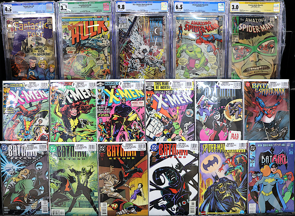 Happy collecting! Chuck Rozanski/Bettie Pages, President - Mile High Comics, Inc. November 10, 2021 P.S. Here are a few of the items just added: MARVEL  ACTION FORCE (GI JOE) (UK MAG) (1986) #1 WITH #2 ACTION FORCE (GI JOE) (UK MAG) (1986) #1 WITH #2 (Marvel United Kingdom Publishings) Near Mint/Mint ACTION FORCE (GI JOE) (UK MAG) (1986) #1 WITH #2 (Marvel United Kingdom Publishings) Very Fine ACTION FORCE (GI JOE) (UK MAG) (1986) #6 (Marvel United Kingdom Publishings) Fine ACTION FORCE (GI JOE) (UK MAG) (1986) #6 (Marvel United Kingdom Publishings) Very Fine ACTION FORCE (GI JOE) (UK MAG) (1986) #9 (Marvel United Kingdom Publishings) Near Mint/Mint ACTION FORCE (GI JOE) (UK MAG) (1986) #9 (Marvel United Kingdom Publishings) Very Fine ACTION FORCE (GI JOE) (UK MAG) (1986) #27 (Marvel United Kingdom Publishings) Near Mint/Mint ACTION FORCE (GI JOE) (UK MAG) (1986) #28 (Marvel United Kingdom Publishings) Near Mint/Mint ACTION FORCE (GI JOE) (UK MAG) (1986) #28 (Marvel United Kingdom Publishings) Fine ACTION FORCE (GI JOE) (UK MAG) (1986) #28 (Marvel United Kingdom Publishings) Very Fine ACTION FORCE (GI JOE) (UK MAG) (1986) #29 (Marvel United Kingdom Publishings) Near Mint/Mint ACTION FORCE (GI JOE) (UK MAG) (1986) #29 (Marvel United Kingdom Publishings) Very Fine ACTION FORCE (GI JOE) (UK MAG) (1986) #40 (Marvel United Kingdom Publishings) Fine ACTION FORCE (GI JOE) (UK MAG) (1986) #40 (Marvel United Kingdom Publishings) Very Fine AVENGERS (1963) (#1-402) (MARVEL) #71 Very Good BLADE (1998) (#1-3) (MARVEL STRANGE TALES) #1 WIZARD 1/2 Near Mint/Mint CAPTAIN MARVEL (1999) (#0-35) (MARVEL) #0 Near Mint/Mint CIVIL WAR (2015) (#1-5) (SECRET WARS) #1 Very Fine CIVIL WAR (2015) (#1-5) (SECRET WARS) #3 Near Mint/Mint CIVIL WAR (2015) (#1-5) (SECRET WARS) #4 Fine CIVIL WAR (2015) (#1-5) (SECRET WARS) #5 Near Mint/Mint EXILES (2001) (#1-100) (MARVEL) #1 Near Mint/Mint EXILES (2001) (#1-100) (MARVEL) #13 Very Fine EXILES (2001) (#1-100) (MARVEL) #24 Very Fine EXILES (2001) (#1-100) (MARVEL) #25 Near Mint/Mint  FANTASTIC FOUR (1961) (#1-416) (MARVEL) #45 CGC 4.5 FANTASTIC FOUR (1961) (#1-416) (MARVEL) #45 CGC 4.5 Very Good FOOM (FRIENDS OF OL' MARVEL) MAGAZINE (1973) #11 Very Fine GUARDIANS OF THE GALAXY & X-MEN: BLACK VORTEX ALPHA (2015) #1 LOZANO Near Mint/Mint HELLRAISER-NIGHTBREED JIHAD (1991) #2 NEWSSTAND Near Mint/Mint HULK (1962) (#1-6, #102-474, #600-635)(INCREDIBLE)(MV) #180 CGC 3.5 Q Very Good LONGSHOT (1985) (#1-6) (MARVEL LIMITED SERIES) #1 NEWSSTAND Very Fine LONGSHOT (1985) (#1-6) (MARVEL LIMITED SERIES) #2 Fine LONGSHOT (1985) (#1-6) (MARVEL LIMITED SERIES) #3 NEWSSTAND Fine LONGSHOT (1985) (#1-6) (MARVEL LIMITED SERIES) #4 Near Mint/Mint LONGSHOT (1985) (#1-6) (MARVEL LIMITED SERIES) #5 NEWSSTAND Very Fine LONGSHOT (1985) (#1-6) (MARVEL LIMITED SERIES) #6 NEWSSTAND Fine MARVEL TALES (1949) (#93-159) #133 (Marvel Atlas Titles) Good MARVELS LIMITED EDITION HC #1 Near Mint/Mint MONSTERS UNLEASHED (1973) (#1-11) (MARVEL MAGAZINE) #2 Very Good MOON KNIGHT (1989) (#1-60) (MARVEL) (MARC SPECTOR) #55 CGC 9.8 Near Mint/Mint NAM (1986) #45 NEWSSTAND Near Mint/Mint PLANET OF THE APES (1974) (#1-24) (MARVEL) (MAGAZINE) #1 Good PLANET OF THE APES (1974) (#1-24) (MARVEL) (MAGAZINE) #2 Good PLANET OF THE APES (1974) (#1-24) (MARVEL) (MAGAZINE) #3 Good PLANET OF THE APES (1974) (#1-24) (MARVEL) (MAGAZINE) #4 Good  SHE-HULK (1980) (#1-25) (SAVAGE SHE-HULK) (MARVEL) #7 NEWSSTAND SHE-HULK (1980) (#1-25) (SAVAGE SHE-HULK) (MARVEL) #7 NEWSSTAND Fine SHE-HULK (1980) (#1-25) (SAVAGE SHE-HULK) (MARVEL) #8 Fine SHE-HULK (1989) (#1-60) (SENSATIONAL SHE-HULK)(MARVEL) #1 NEWSSTAND Near Mint/Mint SHE-HULK (1989) (#1-60) (SENSATIONAL SHE-HULK)(MARVEL) #1 NEWSSTAND Very Fine SILVER SURFER BY LEE & KIRBY COLLECTION (FIRESIDE) (1978) #1 SC (Marvel Fireside) Near Mint/Mint SPIDER-MAN (1963) (AMAZING SPIDER-MAN) (#1-441) #55 CGC 3.0 SS Good SPIDER-MAN (1963) (AMAZING SPIDER-MAN) (#1-441) #119 CGC 6.5 Fine TALES OF SUSPENSE (1959) (#1-99) (ATLAS/MARVEL) #33 Good VENOM (2011) (#1-42) (MARVEL) #3 Good VENOM (2011) (#1-42) (MARVEL) #31 Near Mint/Mint VENOM (2011) (#1-42) (MARVEL) #32 Fine VENOM (2011) (#1-42) (MARVEL) #33 Very Fine VENOM (2011) (#1-42) (MARVEL) #37 Near Mint/Mint VENOM (2011) (#1-42) (MARVEL) #38 Fine VENOM (2011) (#1-42) (MARVEL) #39 Near Mint/Mint VENOM (2011) (#1-42) (MARVEL) #40 Fine VENOM (2011) (#1-42) (MARVEL) #41 Very Fine VENOM (2011) (#1-42) (MARVEL) #42 Fine VENOM: TOOTH & CLAW (1996) #1 Fine WEAPON X (2002) (#1-28) (MARVEL) #1 Very Fine WOLVERINE (1988) (#1/2-189) (MARVEL) #35 Very Fine WOLVERINE (1988) (#1/2-189) (MARVEL) #36 Very Fine WOLVERINE (1988) (#1/2-189) (MARVEL) #38 Near Mint/Mint  WOLVERINE (1988) (#1/2-189) (MARVEL) #48 WOLVERINE (1988) (#1/2-189) (MARVEL) #48 Fine WOLVERINE (1988) (#1/2-189) (MARVEL) #48 Near Mint/Mint WOLVERINE (1988) (#1/2-189) (MARVEL) #64 Near Mint/Mint WOLVERINE (1988) (#1/2-189) (MARVEL) #67 Near Mint/Mint WOLVERINE (1988) (#1/2-189) (MARVEL) #88 DELUXE Very Fine WOLVERINE (1988) (#1/2-189) (MARVEL) #124 Near Mint/Mint WOLVERINE (1988) (#1/2-189) (MARVEL) #125 Near Mint/Mint WOLVERINE (1988) (#1/2-189) (MARVEL) #139 Near Mint/Mint WOLVERINE (1988) (#1/2-189) (MARVEL) #140 Near Mint/Mint WOLVERINE (1988) (#1/2-189) (MARVEL) #143 Near Mint/Mint WOLVERINE (1988) (#1/2-189) (MARVEL) #146 Very Fine WOLVERINE (1988) (#1/2-189) (MARVEL) #154 Near Mint/Mint WOLVERINE (1988) (#1/2-189) (MARVEL) #161 Near Mint/Mint WOLVERINE (1988) (#1/2-189) (MARVEL) #163 Very Fine WOLVERINE (1988) (#1/2-189) (MARVEL) #164 Near Mint/Mint WOLVERINE (1988) (#1/2-189) (MARVEL) #165 Near Mint/Mint WOLVERINE (1988) (#1/2-189) (MARVEL) #166 Very Fine WOLVERINE (1988) (#1/2-189) (MARVEL) #174 Very Fine WOLVERINE (1988) (#1/2-189) (MARVEL) #177 Near Mint/Mint WOLVERINE (1988) (#1/2-189) (MARVEL) #178 Near Mint/Mint WOLVERINE (1988) (#1/2-189) (MARVEL) #179 Very Fine WOLVERINE (1988) (#1/2-189) (MARVEL) #184 Near Mint/Mint WOLVERINE (1988) (#1/2-189) (MARVEL) #186 Near Mint/Mint WOLVERINE (19